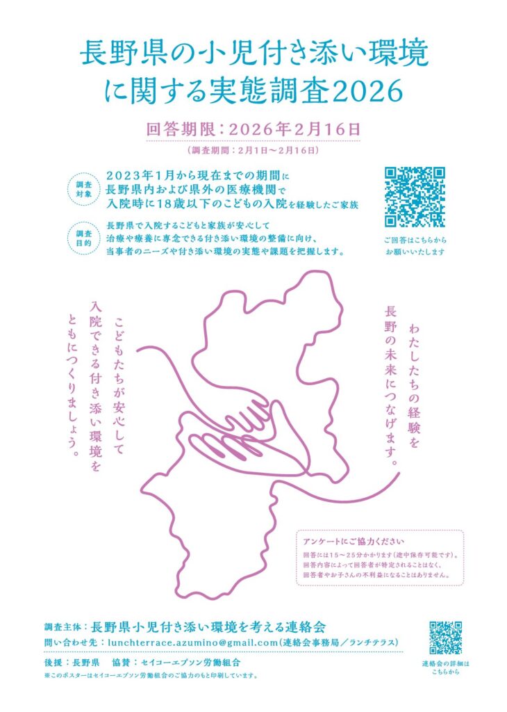 「長野県の小児付き添い環境に関する実態調査2026」が行われます